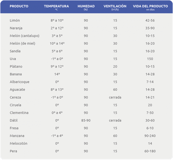 Recomendaciones de temperatura para el transporte de frutas frescas