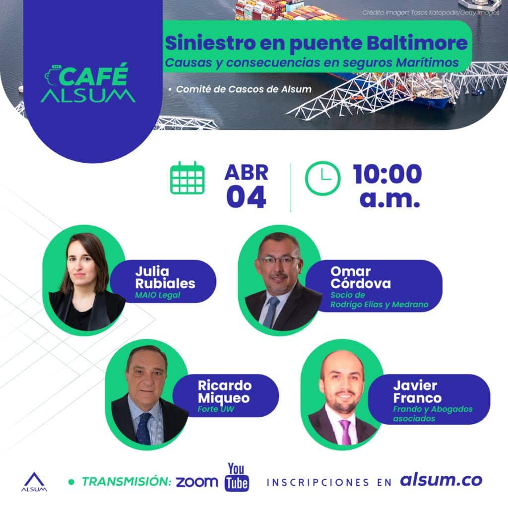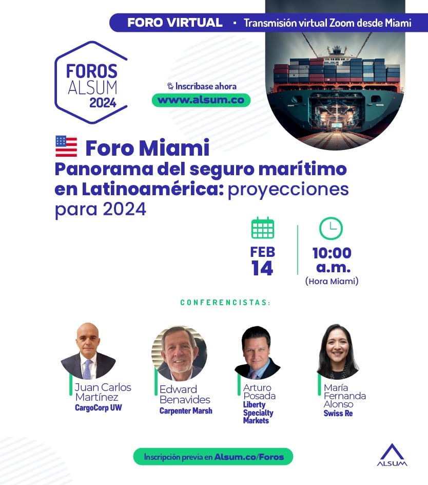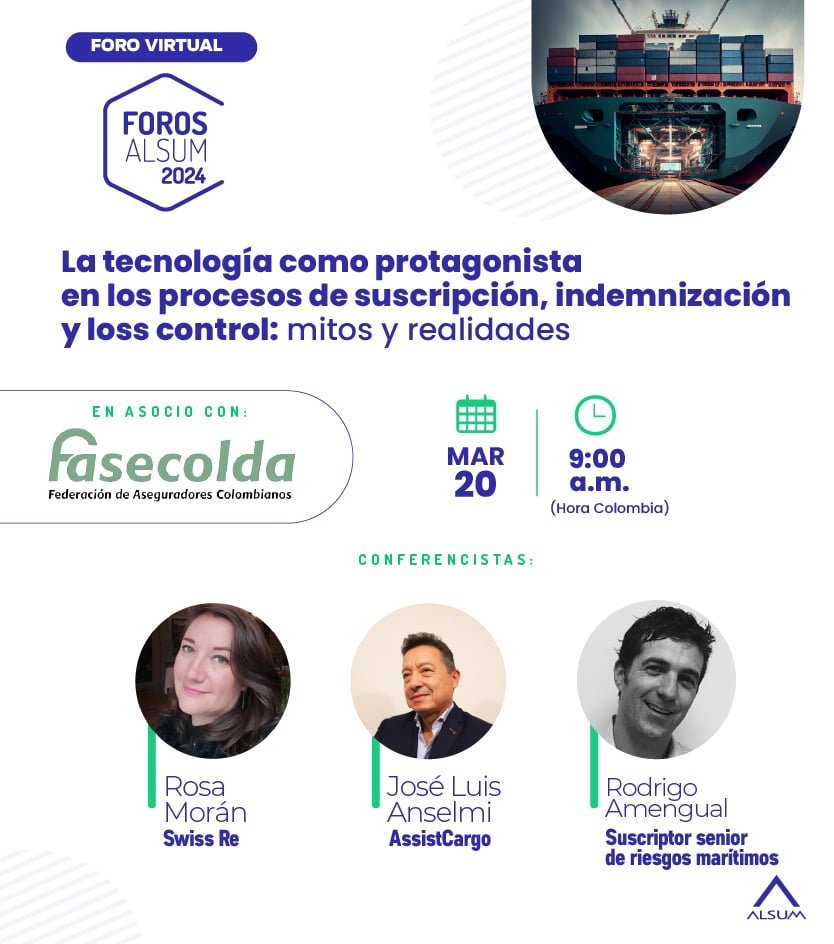 Cómo parte de las estrategias de actualización profesional ALSUM desarrolla foros virtuales quincenales enfocados en los aspectos más relevantes de las líneas de Cascos, Carga, Responsabilidades Marítimas, Derecho Marítimo, logística, entre otros temas transversales a la industria.