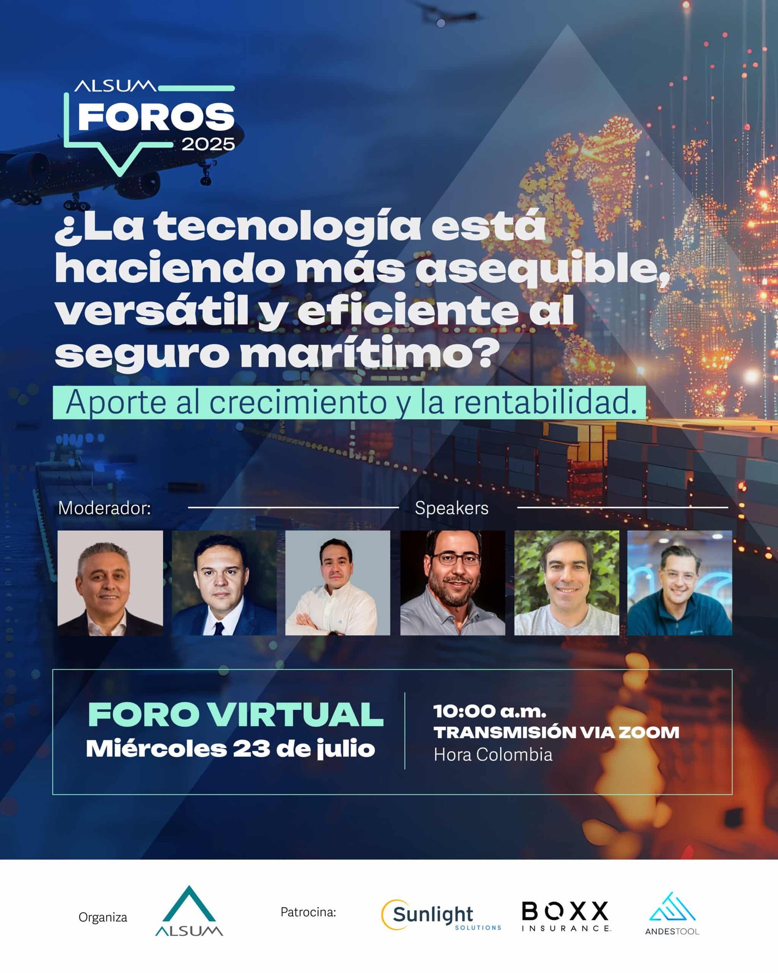 En un mundo cada vez más digital, entender cómo las nuevas tecnologías impactan al seguro marítimo es clave para mantenerse competitivo y preparado. Lo invitamos a participar en nuestro próximo Foro Virtual ALSUM, donde exploraremos los retos, tendencias y el futuro de la tecnología en el sector marítimo.