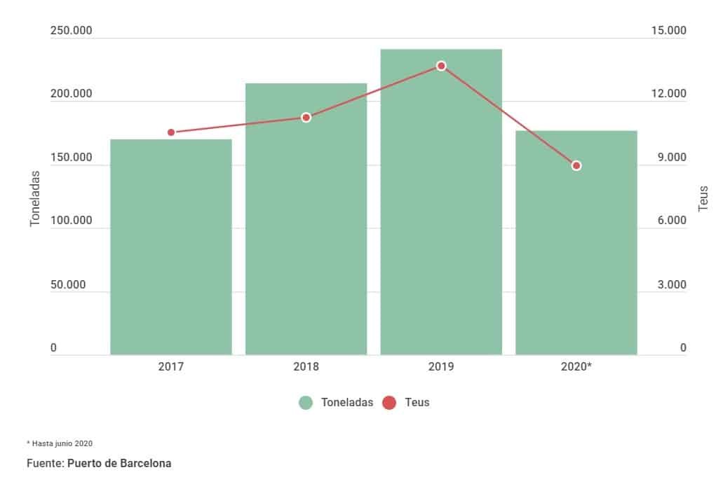 EVOLUTION OF TRAFFIC FROM THE PORT OF BARCELONA WITH PORTS OF COLOMBIA