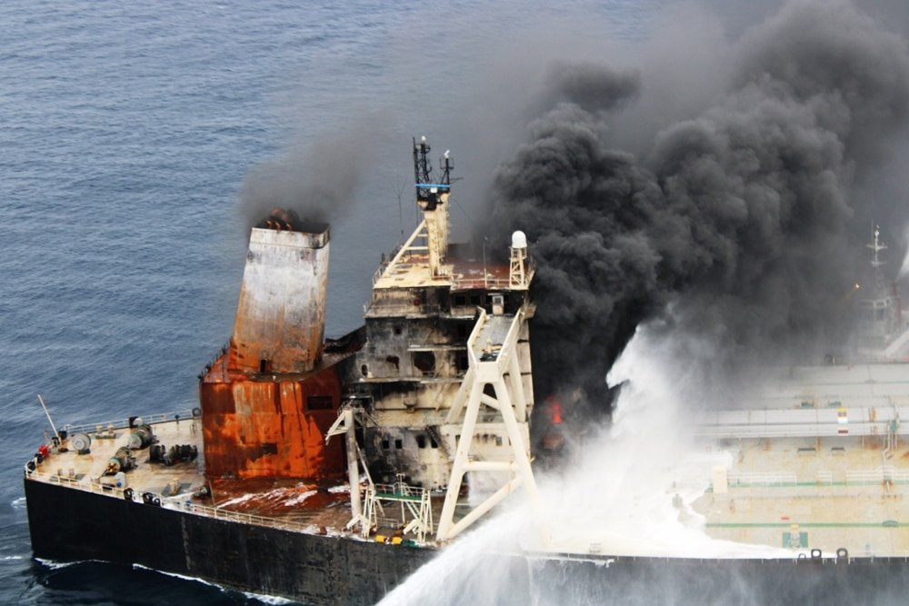 The fire initially broke out early on the morning of September 3 after a reported explosion in the engine room of the tanker. Initially, the authorities thought that they had been able to contain the fire to the engine room, but it spread engulfing the deckhouse and bridge area on the stern of the vessel. Twenty-one of the vessel’s crew were safely evacuated and at last report aboard a Sri Lankan navy ship while the authorities arranged for the crew to telephone home and worked to maintain COVID-19 protocols as a first step to repatriating the crew. One engineer from the New Diamond was hospitalized in Sri Lanka suffering from burns and one crew member from the engine room was reportedly killed in the initial explosion.