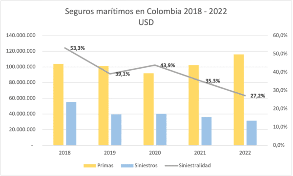 Las elecciones presidenciales de Colombia en junio de 2022 resultaron en la victoria de Gustavo Petro de la coalición de izquierda. Las primas del país en seguros marítimos se ubicaron en USD 116 millones, reflejando un crecimiento de 13,4% respecto a 2021. En relación con el seguro de carga presentó un aumento en primas de 13,2% versus el año anterior. Las compañías colombianas reportaron en el seguro de cascos, un crecimiento del 16,3% respecto a 2021.