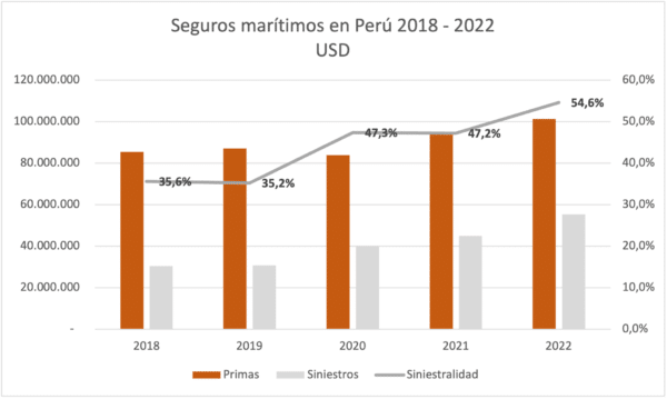 El docente de economía Carlos González, informó que el PBI del Perú se vio afectado en 2022 por la alta inflación, los fallidos procesos de compra de urea, los conflictos sociales y la desaceleración de la actividad productiva en un contexto de crisis política. Las primas del país en seguros marítimos se ubicaron en USD 101 millones, reflejando un crecimiento de 6,6% respecto a 2021. En relación con el seguro de carga presentó un aumento en primas de 10,8% versus el año anterior. Las compañías peruanas reportaron en el seguro de cascos, un decrecimiento del 0,4% respecto a 2021.